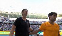 American Sebastian Korda celebrates his upset triumh over world number one Carlos Alcaraz in the third round of the Miami Open (Rich Storry) Sebastian Korda stared down Carlos Alcaraz on Sunday, sending the world More...