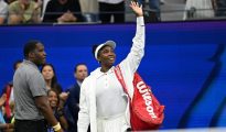 250826 — NEW YORK, Aug. 26, 2025 — Venus Williams of the United States waves her hand after the women s singles first round match against Karolina Muchova of the Czech Republic at the 2025 US Open tennis More...