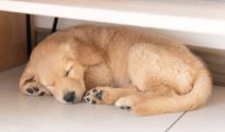 Dog owner in tears when they realise why puppy always sleeps in same spot