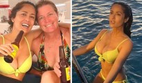 Make-up free Salma Hayek turns heads in bright bikini as she sips beer with ‘dive master’