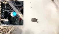 Horror moment Ukrainian grenade lands on Russian soldier’s head sending his helmet flying