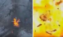 Crazy moment Russian soldier is blown up playing ‘game of tag’ with Ukrainian drone