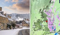 UK weather map shows huge east-west divide as half of Britain hit by 500-mile wall of snow