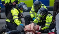 Chaos in Stoke as protesters left covered in blood after fighting outside mosque