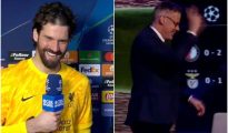 Jamie Carragher walks off CBS Sports set during Alisson Liverpool interview
