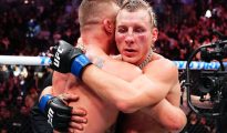 LAS VEGAS, NEVADA – JANUARY 24: (R-L) Paddy Pimblett of England embraces Justin Gaethje following their UFC lightweight interim championship bout during the UFC 324 event at T-Mobile Arena on January 24, More...