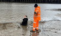 Mum ‘petrified’ after getting stuck knee-deep in mud in UK seaside town