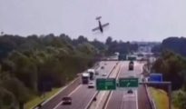 Horror plane crash in Italy as aircraft plunges onto motorway setting vehicles ablaze