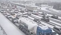 Travel chaos as hundreds of flights to Europe cancelled and snow causes 1000km traffic jam