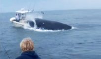Angry humpback whale tosses two sailors into the sea by crashing into boat