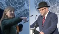 George Galloway heckled by Just Stop Oil protester during Rochdale victory speech